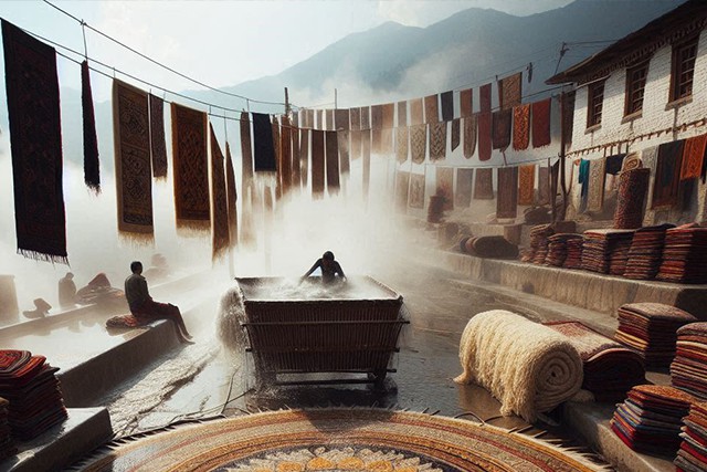 The white yarn is transformed into a vibrant array of colors through the dyeing process. Natural and synthetic dyes are carefully selected to achieve the desired shades, with an emphasis on eco-friendly practices to minimize environmental impact. After dyeing, the yarn is meticulously dried to ensure the colors are set and vibrant, ready to be woven into exquisite carpets.